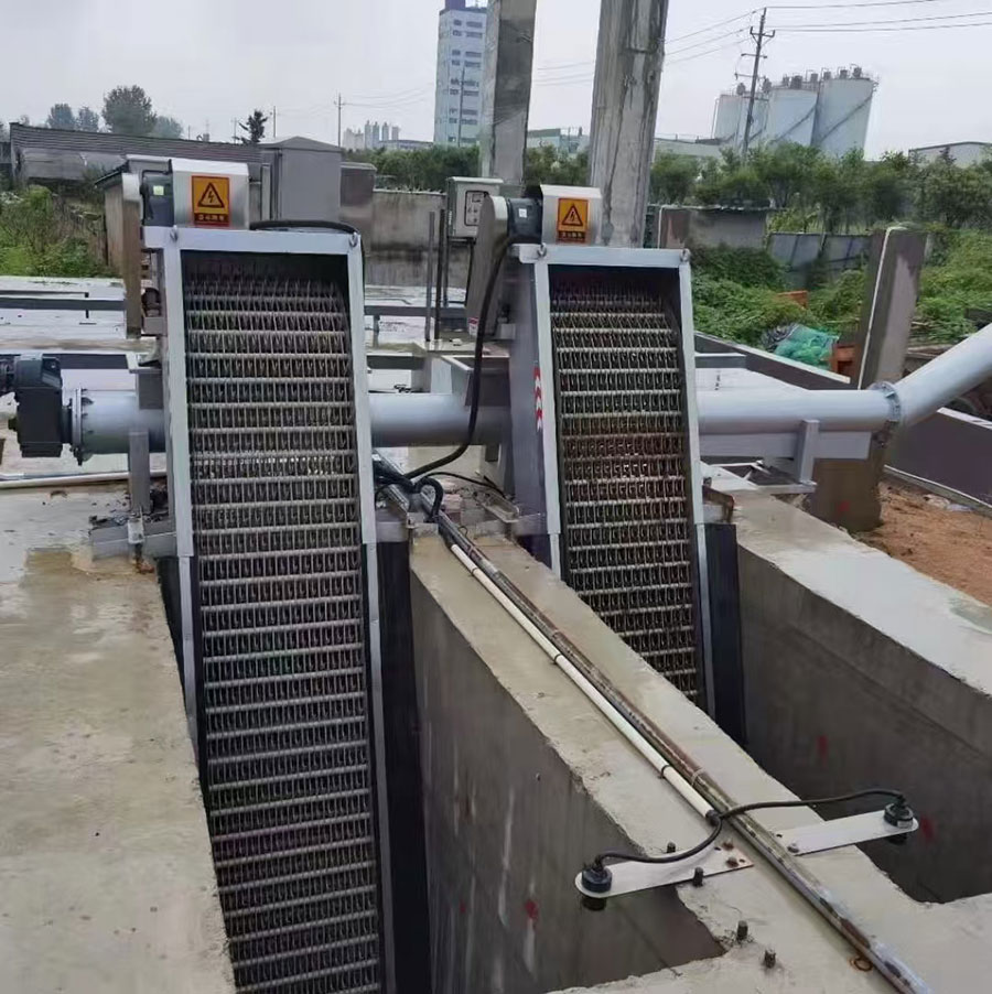 • 清污機系列自動化程度高清除附著在攔污柵上雜物的機械設備。在污物較多的水庫或河道上,為保證水電站或泵站得以安全、正常地運行,常需設置清污機,以便在不停機和不放空水庫的條件下進行清污?;剞D齒耙式清污機一般與攔污柵做成整體,回轉齒耙式清污機的清污刮板傳動裝置宜采用回轉式輸送鏈。